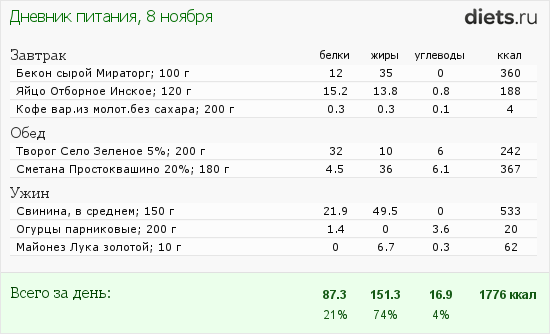 Вчера ела интуитивно, сегодня подсчитала вышло 1010ккал, ЖБУ 88_26_8% совсем не ем углеводов, а мне насчитывает 8% откуда интересно столько.