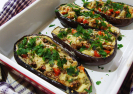 Фаршированные баклажаныИнгредиенты: баклажаны 3 шт., болгарский перец 2 шт., лук 1 шт., куриное филе 500 г, майонез Дюкана 2 ст. л., сыр низкой жирности, соль, черный молотый перец. Описание и способ приготовления:Разрезать баклажаны на 2 части, вырезать мякоть. Получившиеся лодочки поставить в духовку минут на 5. Мякоть баклажана порезать небольшими кубиками. Порезать перец, лук и обжарить. Добавить баклажаны, поперчить, посолить и тушить до готовности. Курицу мелко нарезать и обжарить. Смешать баклажаны и курицу, добавить майонез, перемешать. Выложить начинку в лодочки, сверху тертый сыр и в духовку пока сыр не расплавится.