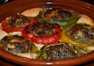 И так – фаршированные перцы. 1. Подготовить перцы, срезав шляпку и вынув внутренности – не оставляйте белых «рубцов» - они не вкусные. Перцы выставить в огнеупорную глубокую посуду подходящего размера. От перечных шляпок отделить остатки мякоти (я имею ввиду цветную часть возле плодоножки) и отложить. 2. В кухонный комбайн заложить лук и измельчить до средней величины, после чего добавить грибы. Когда лук и грибы будут мелко порублены (по размеру как гречка, примерно), добавить туда фарш, обрезки сладкого перца и специи (соль, перец). Снова включить комбайн и дать ему поработать секунд 30 – чтоб всё хорошо перемешалось, но не превратилось в детское питание. 3. Наполните перцы фаршем очень плотно и верните в посуду для запекания – она должна быть выше, чем перчики. 4. Готовим соус – смешиваем кипяток, бульонный кубик, кетчуп и йогурт до однородного состояния. Сколько вам понадобится воды – не могу сказать, но перчики должны быть покрыты на 3/4 от их высоты. Я советую сначала смешать соус с 200-300 мл воды. Воду всегда можно будет добавить просто в кастрюлю. 5. Заливаем соусом перцы. Если соуса мало - добавляем кипятка до нужного уровня. 6. Запекаем в духовке при температуре 180 С 50-55 минут (последние 20 минут советую прикрыть перцы фольгой, чтоб не пригорали). Если перчик в своей надводной части мягкий – значит готово. 7. В любом фарше есть жир, который нам совершенно не нужен – весь он ВЫТОПИТСЯ и останется в ПОДЛИВЕ. Посему – готовые перцы вынимаем из подливы в другую посуду, дабы избежать обратного всасывания жиров. Если вам жалко подливку выливать – дайте ей остыть и поставьте в холодильник на часик – весь жир можно будет собрать с поверхности шумовкой и разогревать перчики в обезжиренной подливе. 8. А нет никакого 8 – приятного аппетита) Запинить