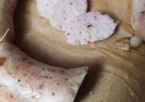 Колбаска диетическая![]() 500 г куриного филе (перекрутила в фарш) 250 г мяса индейки (мелко порезала) 10 г соли 1 ч. л. сухого чеснока 1 ч. л. кориандра молотого ⅓ ч. л. черного перца щепотка сладкой паприки (хлопья) 5 г желатина Описание и способ приготовления:Вот такая колбаска у меня получилась. Вкусно! Это не классический рецепт, с готовкой и специями я импровизировала.
