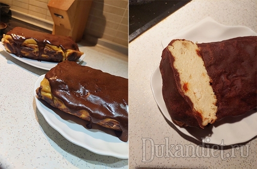 ✔ Выложить в форму, застеленную пергаментом (пергамент предварительно намочила) и в духовку на 45 мин при 170С, затем на 10 мин при 180С. ✔ Достать, охладить и покрыть глазурью: 2-3 ст.л. сухого обезжиренного молока, 1 ст. л. какао, сахзам и ваниль, долить 1-2 ст. л. молока (смотрите по консистенции). Поставить в холод на пару часов, лучше на ночь. P.S. На фото двойная порция.