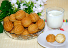 2 ст. л. кокосового масла или маргарина, 3 желтка, 1 ст. л. яичного порошка, 2 ст. л. клейковины, 3 ст. л. кукурузного крахмала, 1 ст. л. сухого обезжиренного молока. сахзам, сода, ванилин.Крем заварной: 3 желтка, 300 мл молока, 1,5 ст. л. кукурузного крахмала, сахзам, ваниль. Описание и способ приготовления:Быстро замесить тесто, скатать в шар. Если тесто не собирается в шар и крошится – добавьте 2-3 ст. л. холодной воды. Положить в холодильник на 40 минут. Тесто выкладываем в орешницу и готовим.