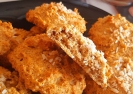 Добавить сыпучку (кокосовой стружки чуть оставить для посыпки). Все хорошо перемешать, можно миксером на малых оборотах. Тесто должно быть не густое, но и не жижа (не растекается). Ложкой на лист посыпать стружкой. 14 шт. «выход». 180 °С 20-25 мин., смотрим по духовке. P. S. Остывали в духовке, хрустящие. Запинить