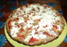 2. Приготовить тесто как на 2 порции хлеба: 4 ст. ложки овсяных отрубей+2 ст. ложки пшеничных отрубей+2 ст. ложки творога+2 яйца+2 чайн. ложки разрыхлителя+ 0,5 чайн. ложки соли. Тесто получится густым - разделить его на 2 части. 3. В форму для выпечки вылить первую половину теста и равномерно распределить. Выложить на него кусочки рыбы. Во вторую часть теста влить 1/3 стакана молока 0%, размешать и равномерно залить рыбу. Сверху можно посыпать мелко нарезанным болгарским перцем. Выпекать на медленном огне примерно 40 минут-час. Когда пирог начнет подрумяниваться - посыпать тертым сыром (у меня 0% испанский порционный сыр BURGOS LINEA) , добавить огонь и запечь до корочки еще минут 10-15. Такую же пиццу можно готовить с куриной грудкой (предварительно отварить), любимыми овощами. Приятного аппетита! Запинить