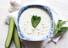 Холодный суп с огурцамиИнгредиенты: 400 г огурцов, 1/2 л йогурта, 1/2 лимона, 1 долька чеснока, нарезанный укроп, молотый черный перец. Описание и способ приготовления:Взято из книги диетической кулинарии.