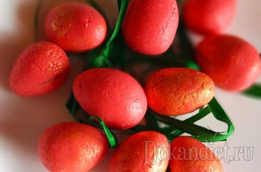 Cладкие перепелиные яйца для украшения куличейИнгредиенты: 4 ст. л. сухого обезжиренного молока 4 мерн. л. сахзама Фитпарад 1 ст. л. жидкого молока/воды + пищевой краситель Описание и способ приготовления:Делается ну очень быстро, до 10 мин и готово. По вкусу как морские камушки или ириска. На фото пол порции.