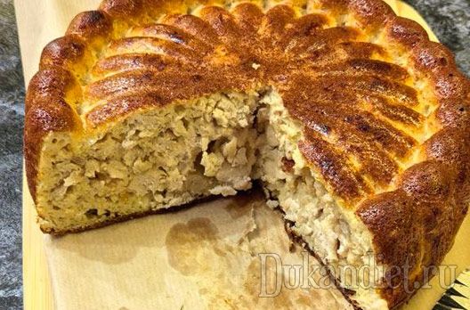 Заливной «бегемотик»Ингредиенты: 200 г обжаренного фарша с луком 2 яйца 125 г мягкого творога 30 г овсяных отрубей 10 г золотых льняных отрубей (любых) 15 г сухого обезжиренного молока 10 г клейковины 10 г яичного порошка 1 ч. л. инулина 1,5 ч. л. разрыхлителя соль, специи по вкусу Описание и способ приготовления:Шикарное тесто, очень вкусный заливной пирог с фаршем.